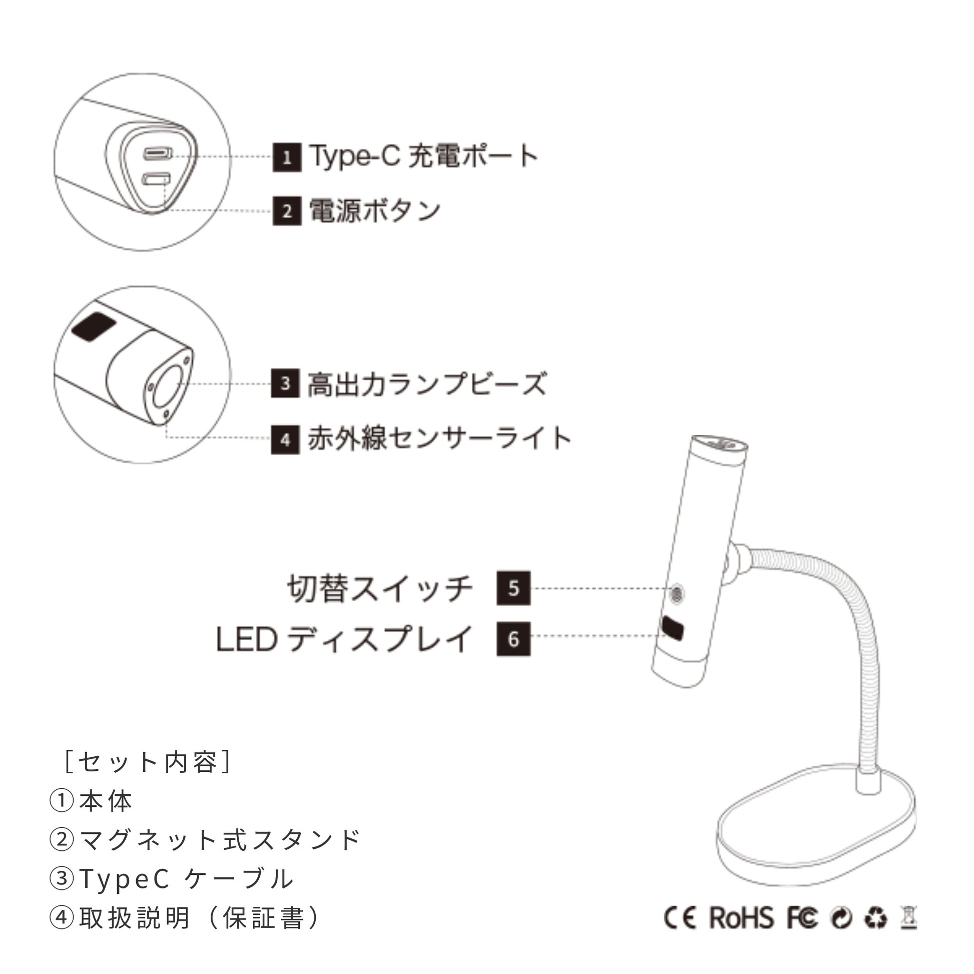 手をかざすだけで自動点灯するタッチレスセンサー搭載で、スイッチ操作が不要。